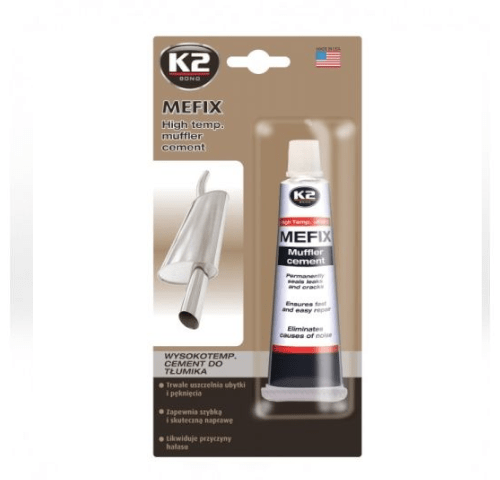 K2 MEFIX to wysokotemperaturowy cement przeznaczony do montażu i napraw zarówno nowych jak i starych układów, rur wydechowych, katalizatorów. Uszczelnia dziury i pęknięcia. Poddany działaniu wysokiej temperatury twardnieje jak stal. Łatwo się rozprowadza. Po utwardzeniu nie kurczy się i nie kruszy, wodoodporny.